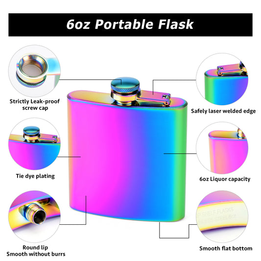 6oz Rainbow Colored Hip Flask