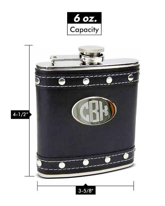 6oz Black Hip Flask with Studded Stainless Steel