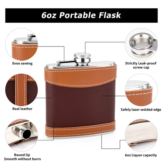 6oz 2 Tone Brown Distressed Leather Hip Flask