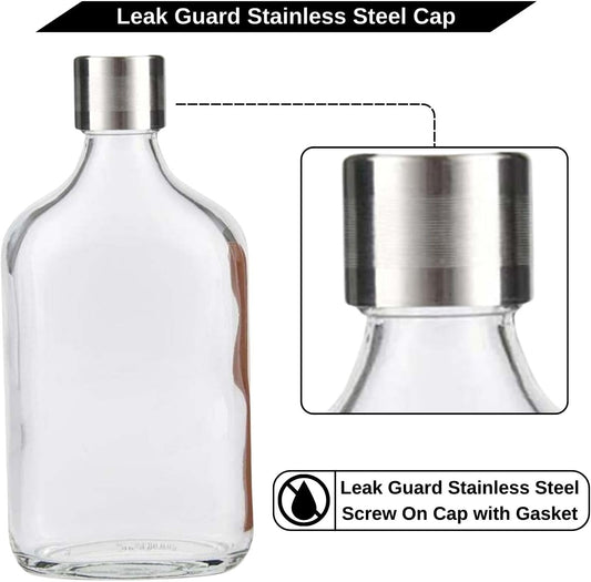 Personalized Modern Glass Liquor Hip Flask with Removable Leather Pouch Holder for Men & Women - Stainless Steel Cap