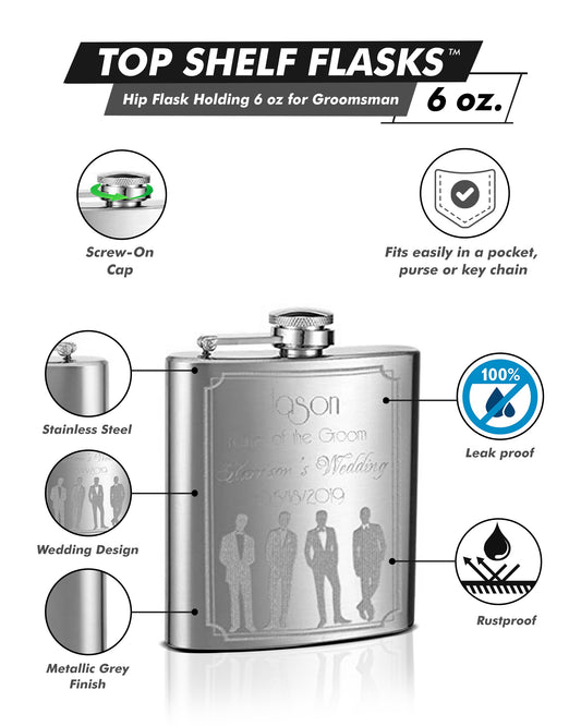 6oz Personalized Wedding Flask for Groomsmen or Groom, 1 Pack