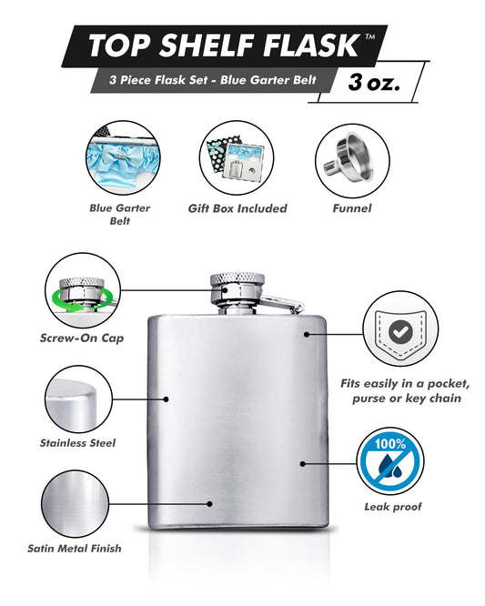 3oz Blue Garter Belt Flask with Free Engraving and Gift Box