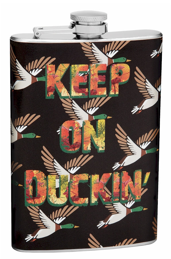 8oz "Keep on Duckin'" Theme Hip Flask